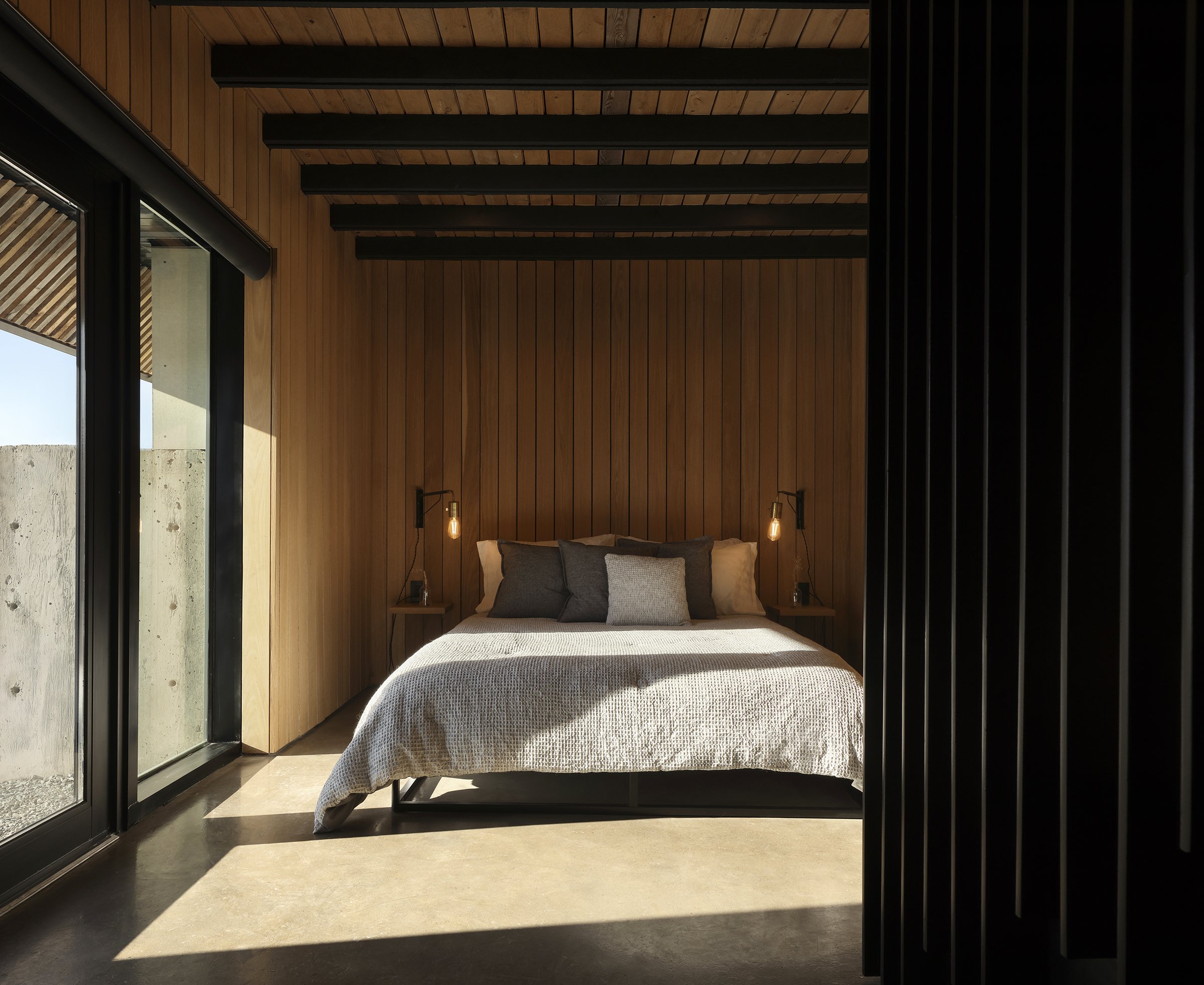 Much of the design work and development of this buildings occurred through the act of building, rather than a design exercise that was removed from the site features. As a result the form of this building naturally and sympathetically rises from a existing pocket in the bedrock then cracks its plan to orient itself inline with the sun and ocean views. Without a typical 'client,' and the usual hinderance of timelines this project has provided our team with an opportunity to explore new methods of building such as pre-fabricated panelized cladding systems, custom-built aluminum window walls, a concrete bathtub that was poured in place, and an exploratory structural system.