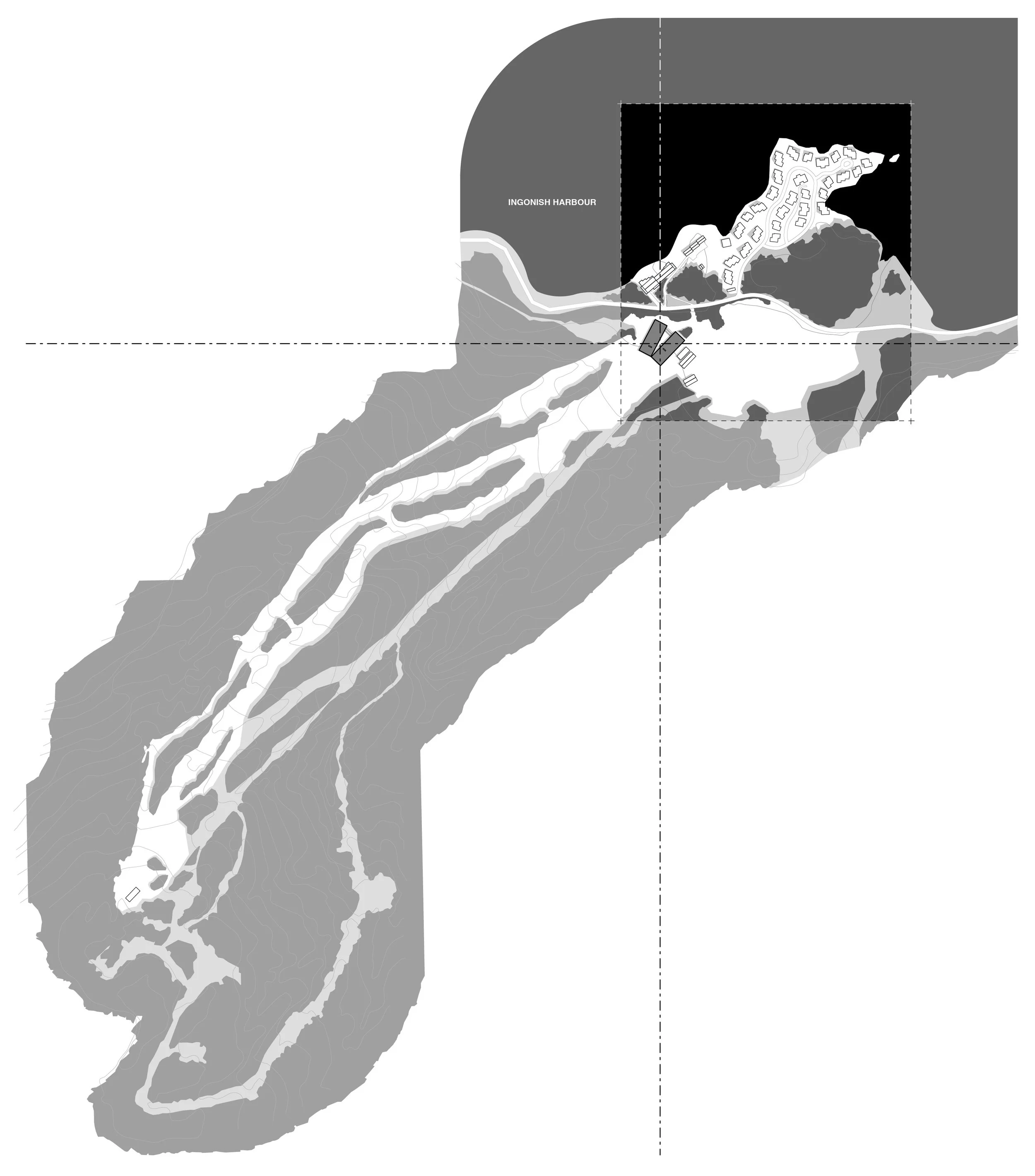 The longitudinal sweeping roofs terminate in exaggerated overhangs that both protect the ski enthusiasts during time of rest while also creating a placemaking effect within the community. The cranked opening between the building volumes align with the coastline which acts as an extended invitation to both the passersby and the community at large.