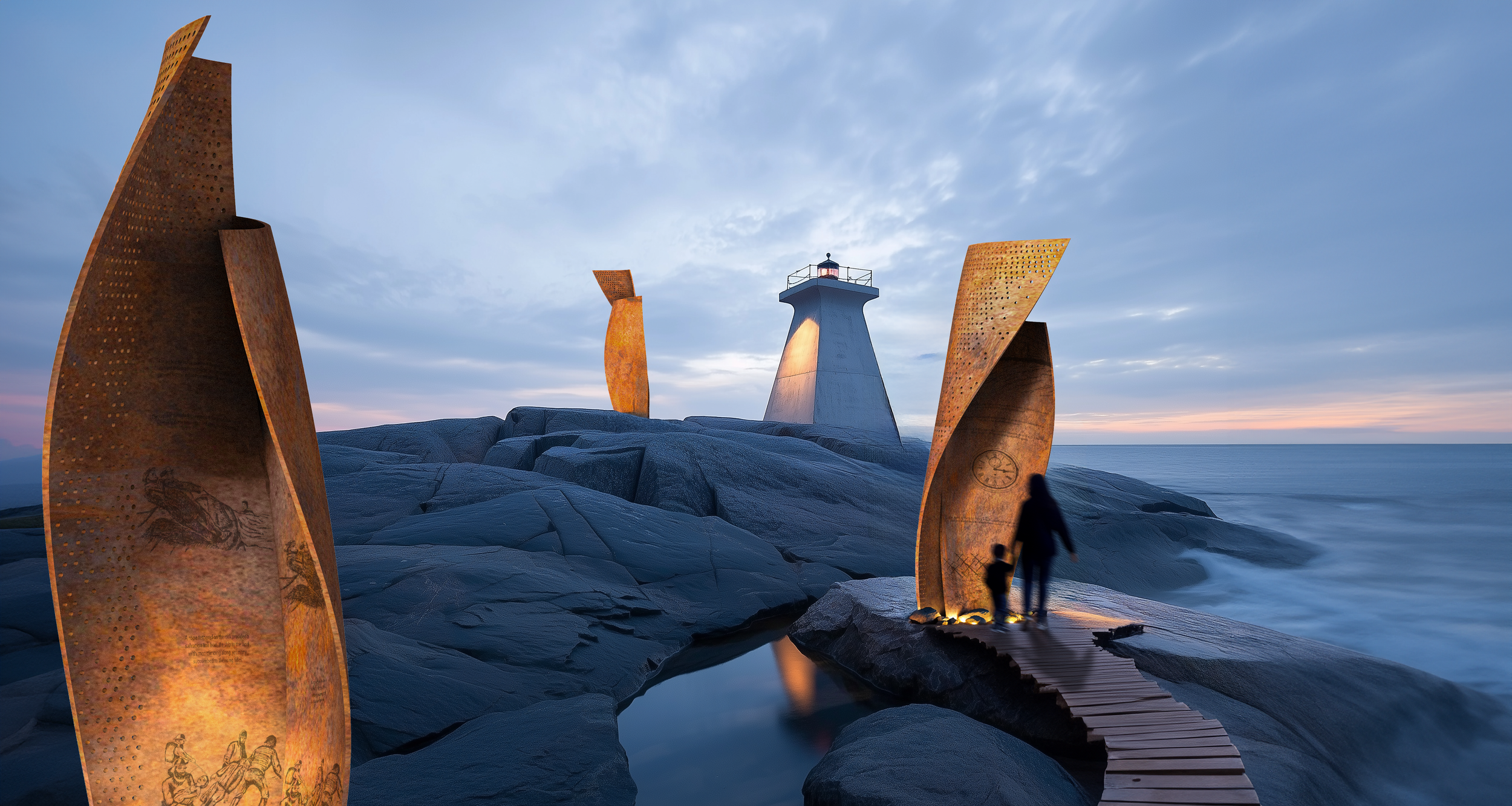 In 2002 we built a mock-up one element of the memorial at our Terence Bay studio. We hope to someday see the final installation along the NS coast so the courageous efforts of Nova Scotians will always be remembered.