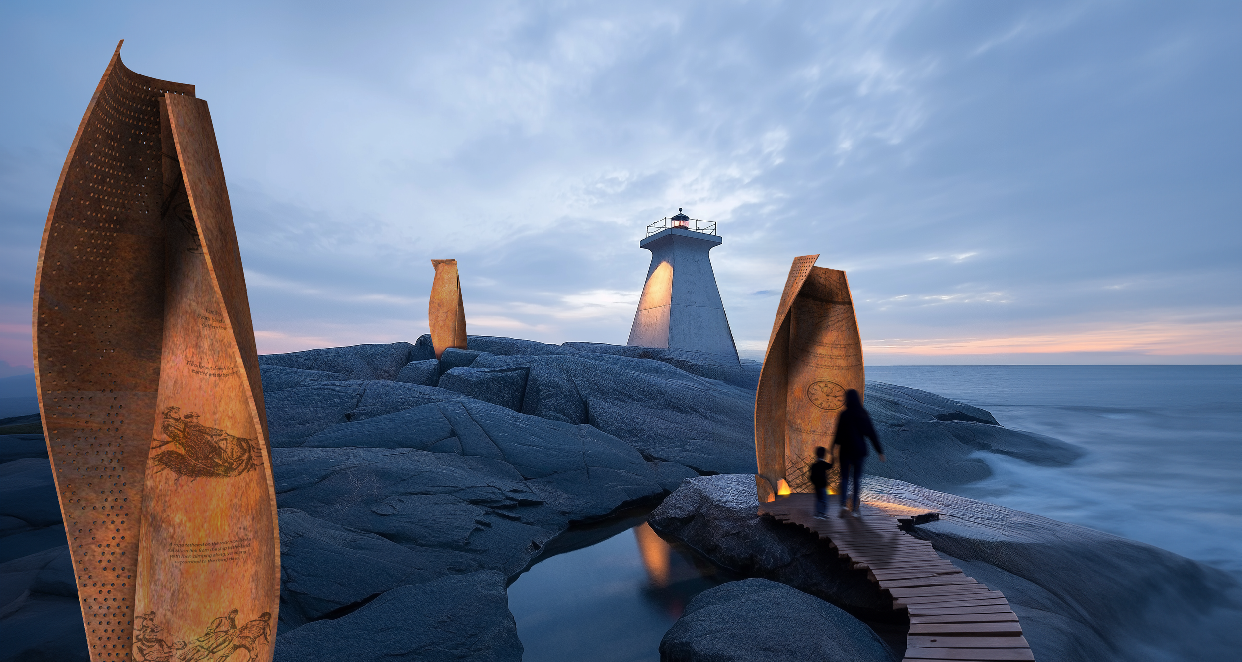In 2002 we built a mock-up one element of the memorial at our Terence Bay studio. We hope to someday see the final installation along the NS coast so the courageous efforts of Nova Scotians will always be remembered.